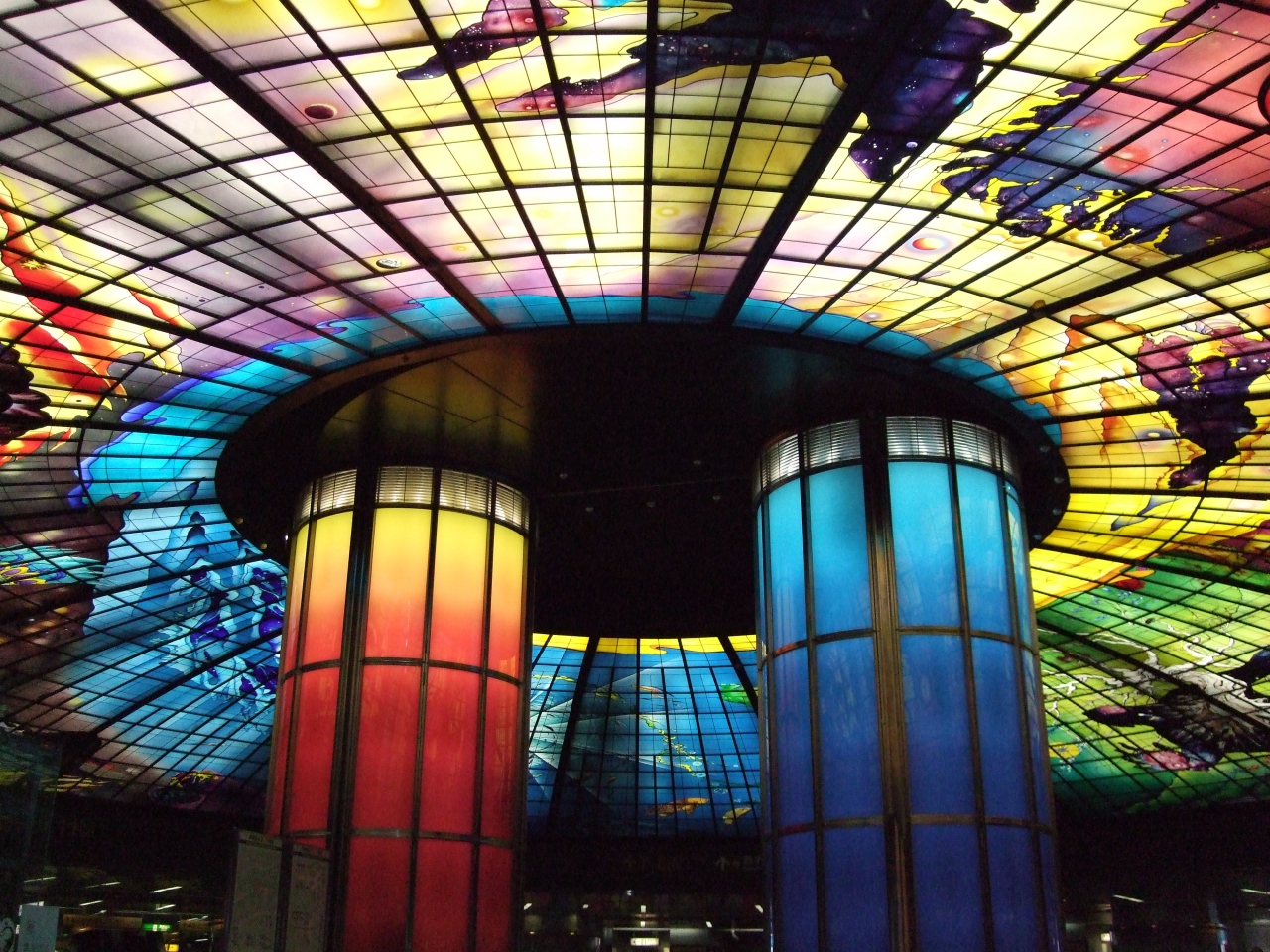 2つの路線の乗換駅の美麗島駅の構内が、大規模なステンドグラスで囲まれた空間があって有名です。『光之穹頂』The Dome of Lightと呼ばれていて、天井まで装飾されています。