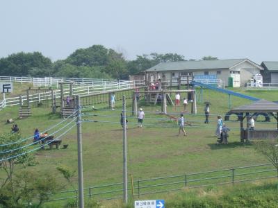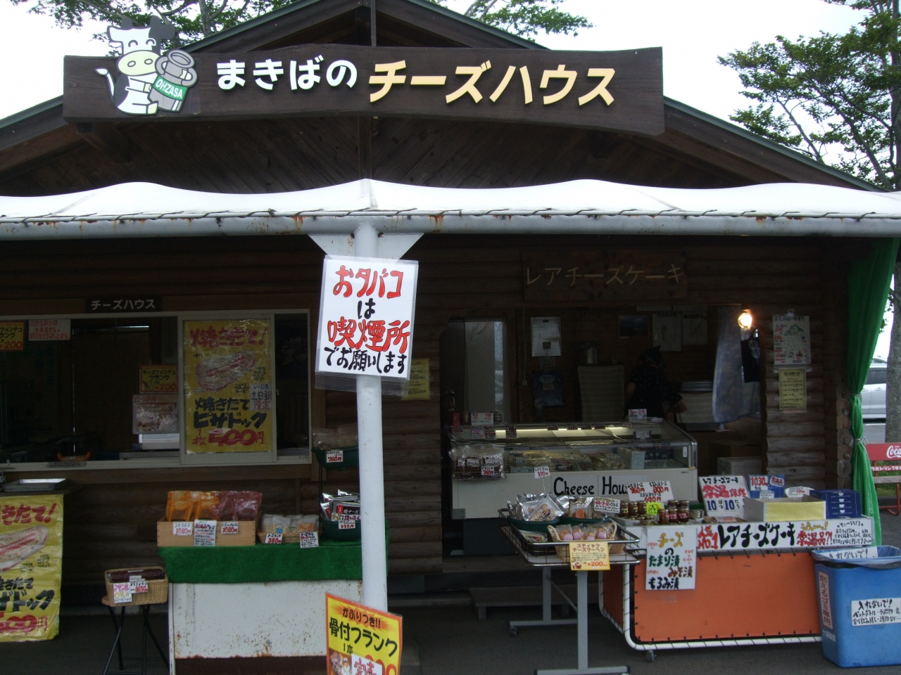広い駐車場の周りには、いろいろな建物や施設があります。ソフトクリーム、牛乳、各種チーズ、自家製フランクフルト、焼きそばなどのファーストフードコーナー。チーズ製品や各種お土産などが販売されている売店と、ジンギスカンがメインのレストラン。他にも無料の休憩所、子ども達が無料で遊べるジャンボ滑り台、アスレチック、動物ふれあいコーナー、サラブレッドに乗れる乗馬コーナー、オートキャンプ場など、施設が豊富です。