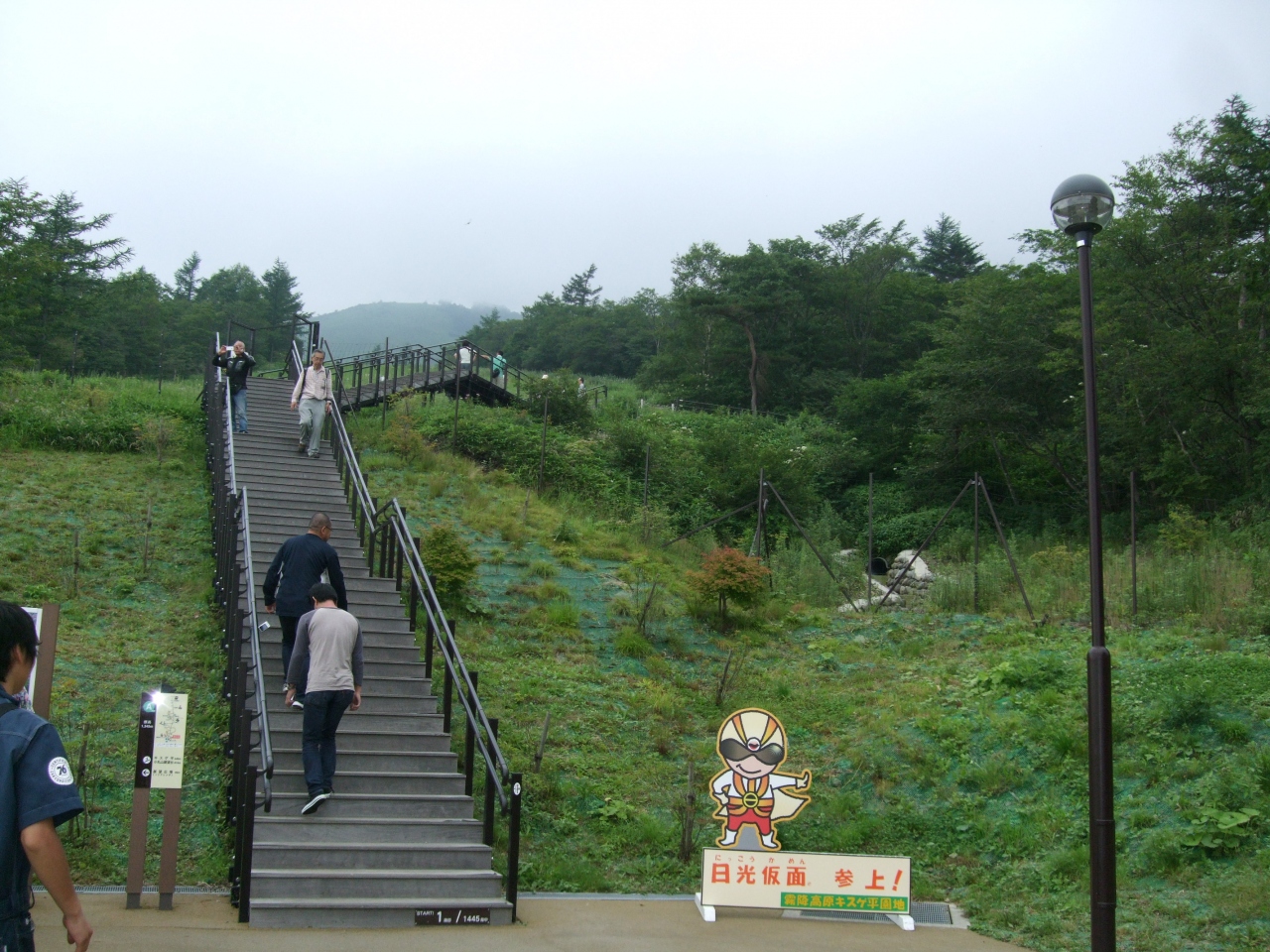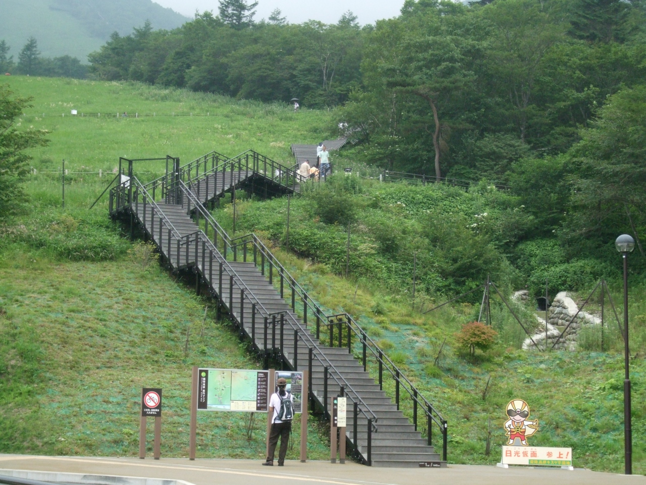 広大な霧降高原の一番の魅力は、キスゲ平園地のニッコウキスゲの黄色い花です。駐車場前から1500段以上ある階段がそのスタートです。昔、頂上までリフトで行きましたが、現在はリフトはなくなって、その代わりの階段です。
