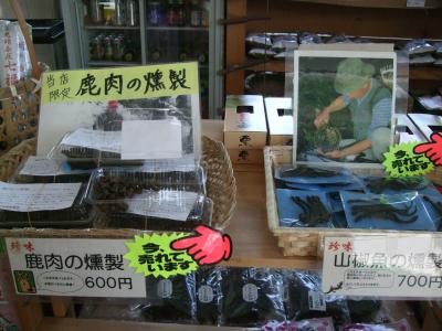 『鹿肉くんせい』『山椒魚くんせい』や、鴨、鹿、猪、熊、キジ、山椒魚、岩魚などの串焼きとか、珍しい物が食べられます。決してゲテ物ではなく、美味しく味付けもしてあります。- 旅行時期