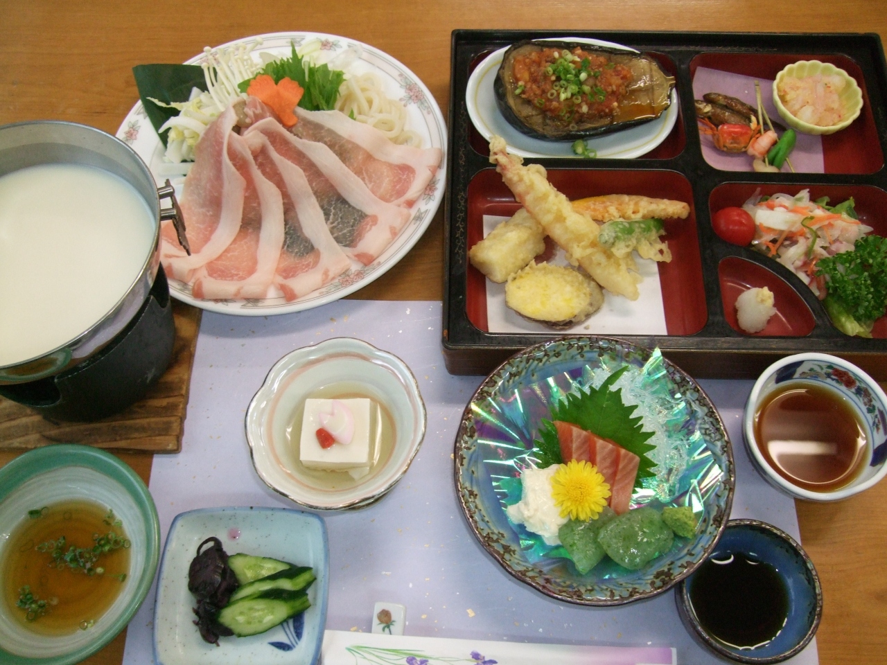 - 「豆乳豚しゃぶ」「ゆば料理」を含めて12品目以上あって大満足