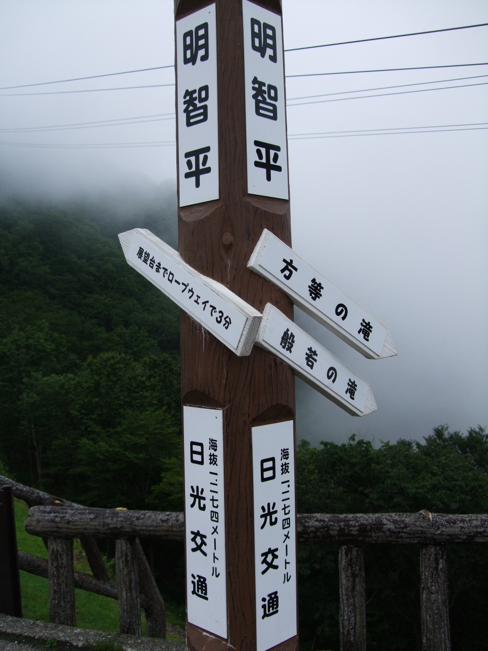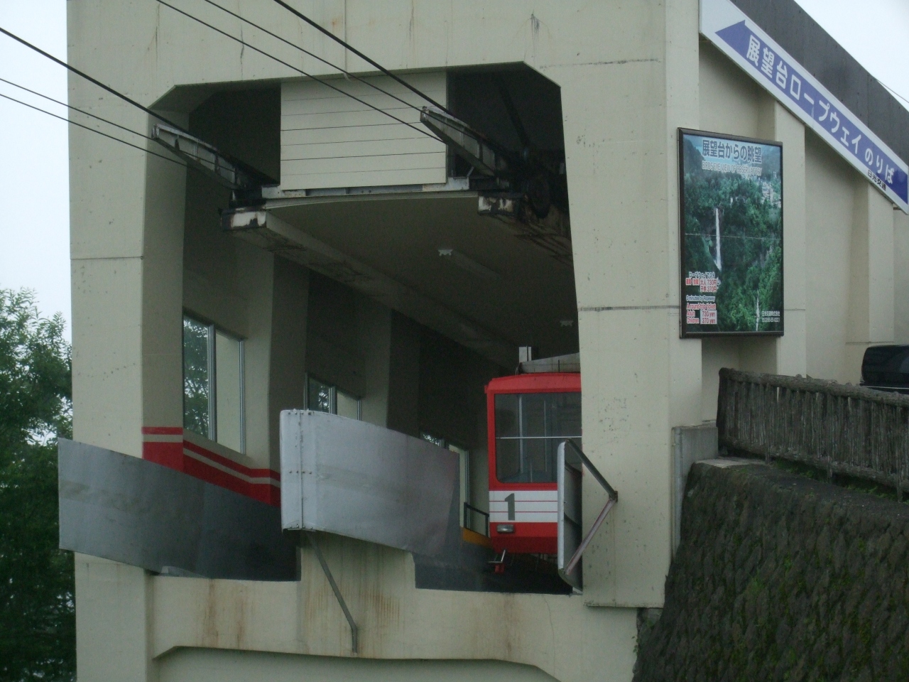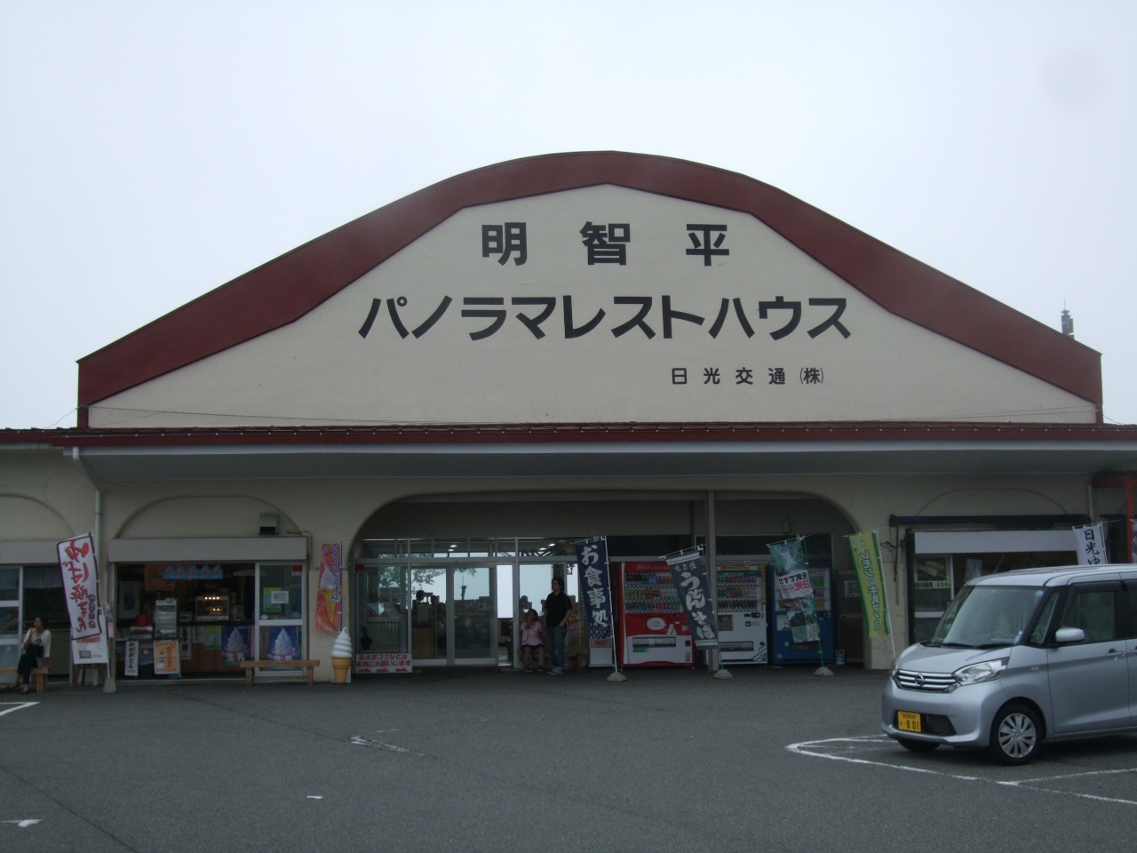 明智平のレストハウスには、お土産やアイスクリームの販売店、食事が出来るレストラン、「華厳の滝展望台ロープウェー」の乗車駅があります。レストランでは「日替わり定食」1000円で、この日は焼き肉定食でした。食事をしながらの窓から外の見晴らしも良いのですが、この日は霧のために視界が悪くて、景色はよく見えませんでした。