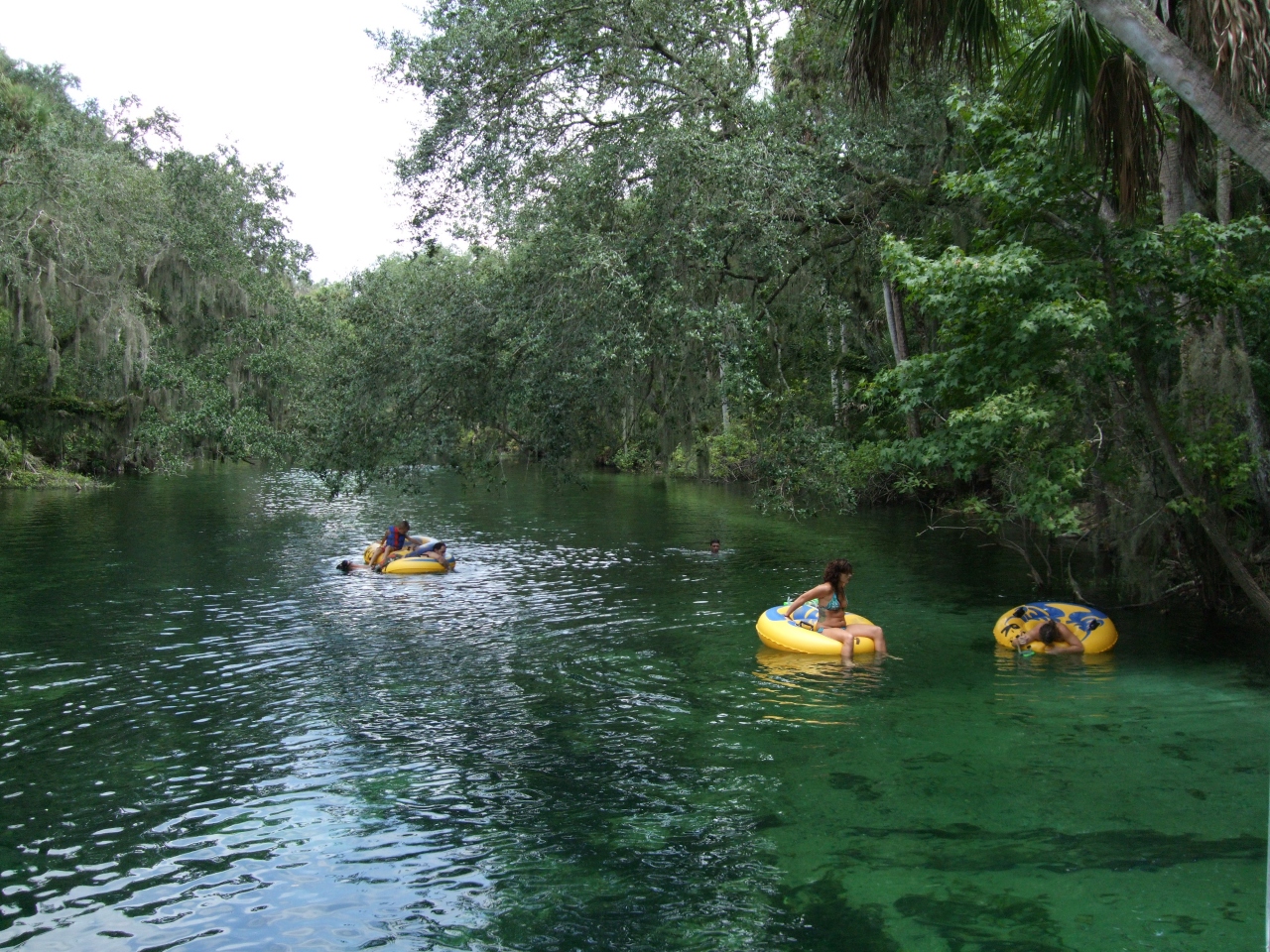 透明な水の川では子ども達が水遊びをしていて、広場の芝生の上では日光浴をする人、広めの川では水上ボートが定期的に運航していていました。その川では、マナティが生息していると聞いて、水の綺麗さに感動しました。