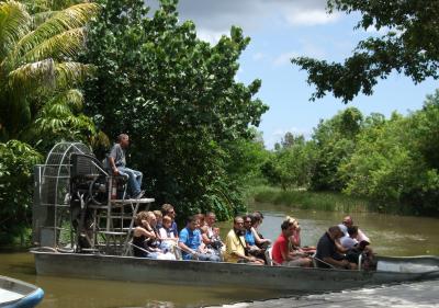 フロリダ半島のエバーグレーズ国立公園は湿原地帯で、自然を堪能する楽しみが豊富です。中でも「Everglades Alligator Farm」は、湿原でワニを養殖していて、観光で簡単に見られます。最高のお薦めは、『ハリケーン・エア・ボート』で、水面上を滑るように湿原を疾走するのですが、水しぶきを浴びながら、爽快感を味わえます。