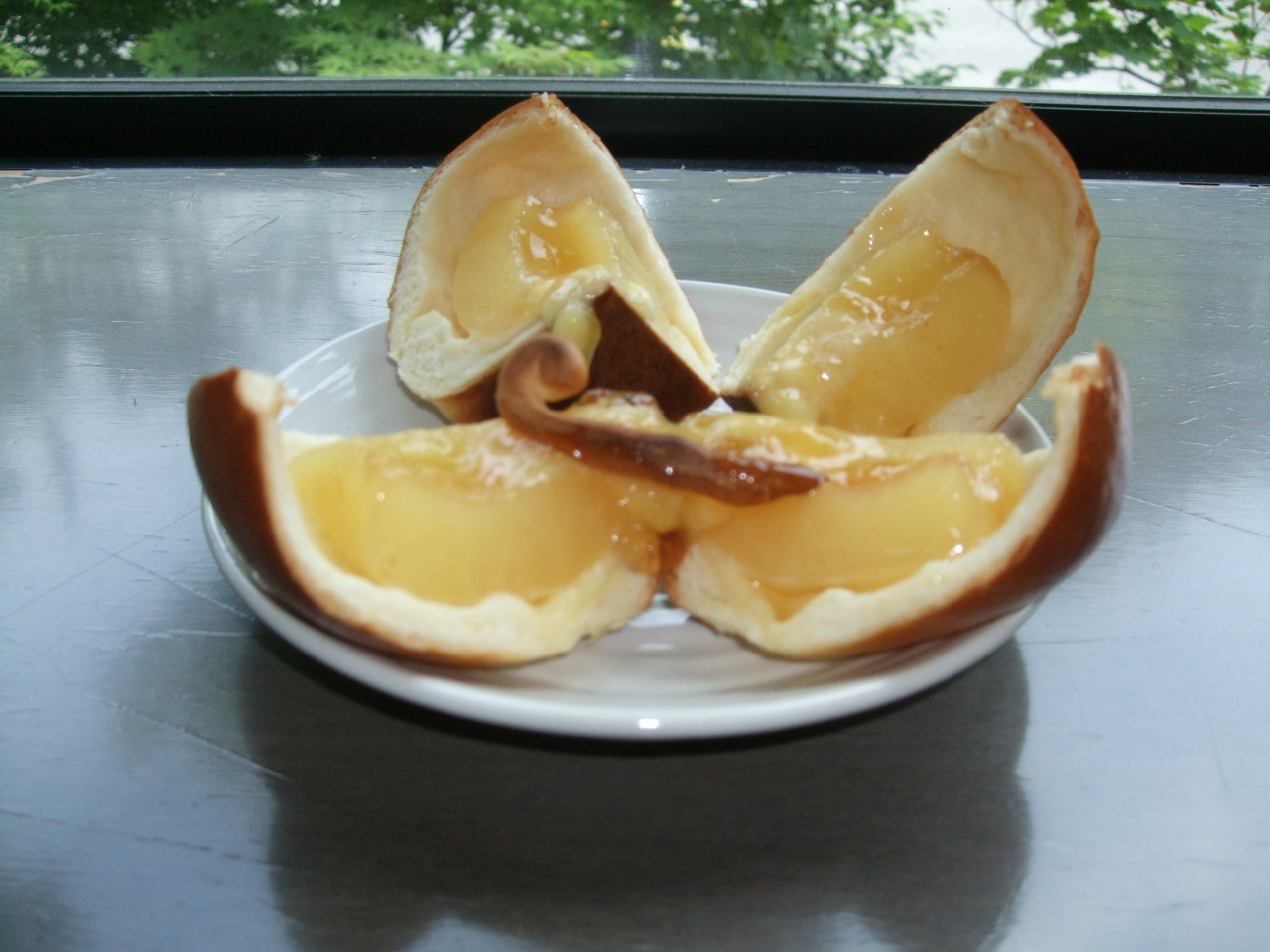一番好きなのが「まるごとリンゴパン」です。リンゴを1個丸ごとパンの中に入っています。リンゴの芯は抜いて、そこにメイプルジャムとカスタードが詰まっています。1個580円です。大きいので満腹感もあります。ただし午前中には売り切れてしまいます。那須に着いた時に予約しておいて、帰る日の朝に取りに行くようにしています。