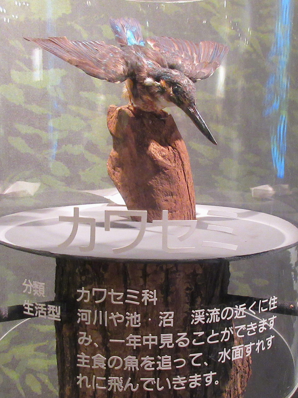 2階「水辺のふしぎ」には、荒川の動物・野鳥・昆虫についての展示や、キジ、トラツグミ、カワセミの剥製が展示してあって、カワセミが「戸田市の鳥」に投票で決定したらしい。