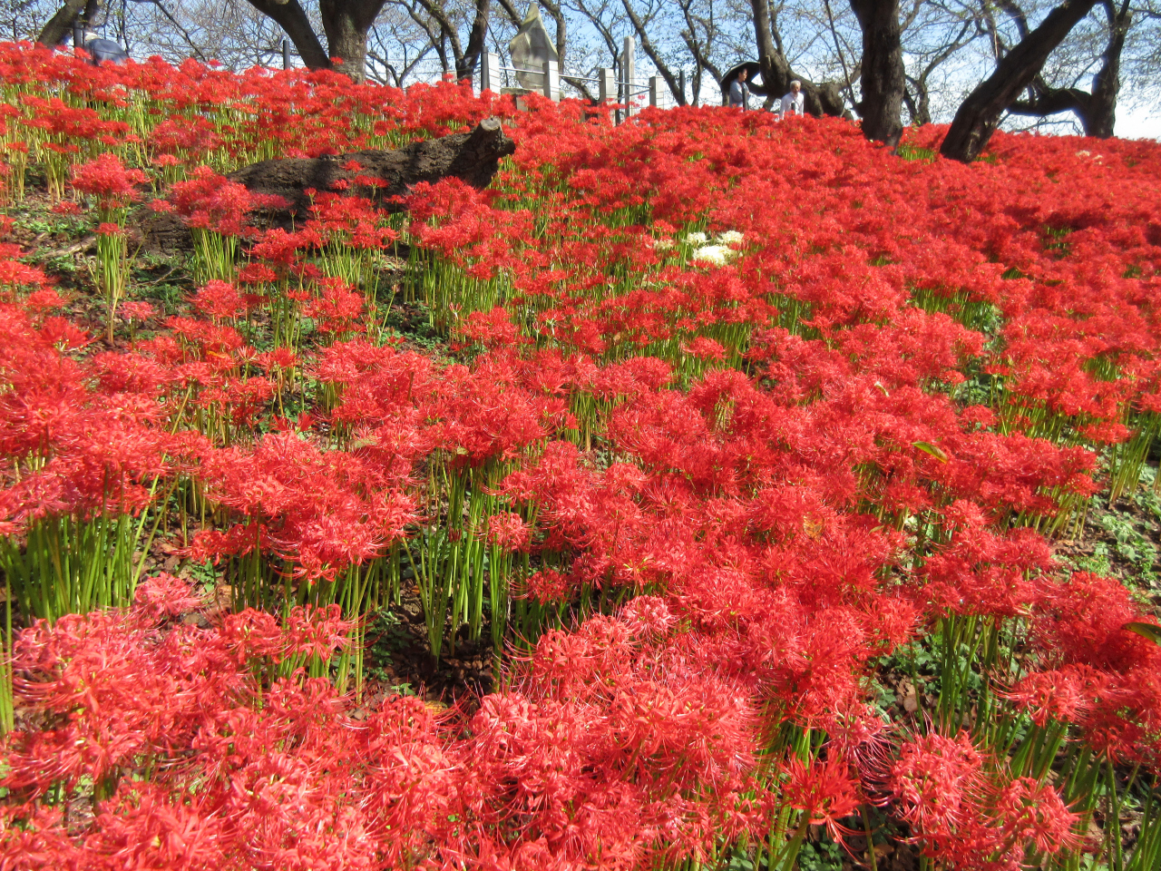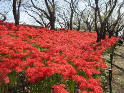 南北1kmの権現堂桜堤の西と東の両側の土手両面を、300万本の曼殊沙華が真っ赤に染めていました。とても見ごたえがあります。