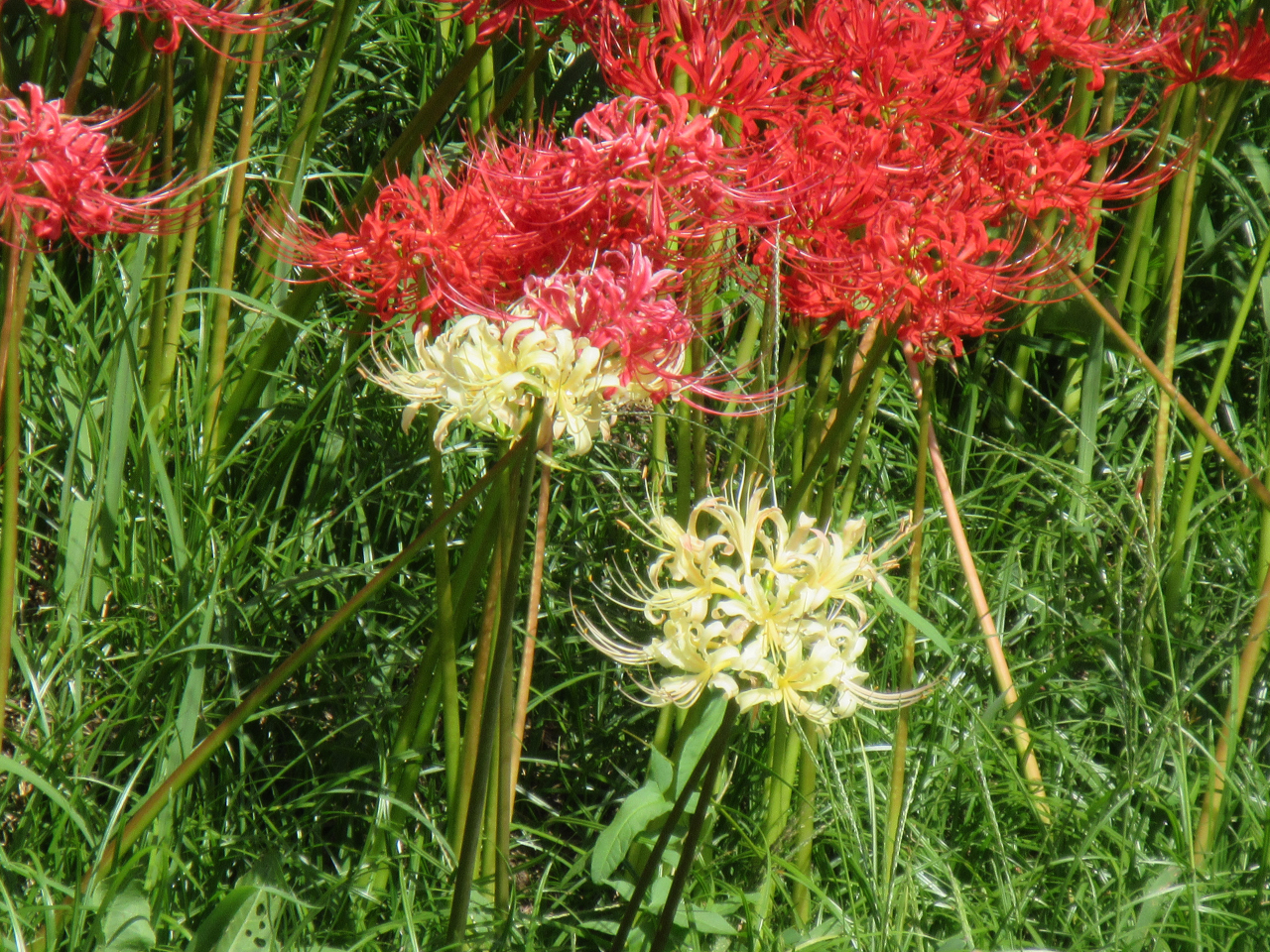 「前もってHPの彼岸花の開花状況」を見ていて、さらにテレビでも満開の報道があって、良い時に来ました。