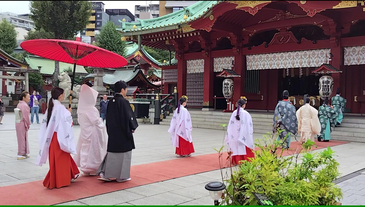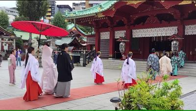 江戸の総鎮守で東京都心108町会の総氏神で、挙式をあげているカップに遭遇