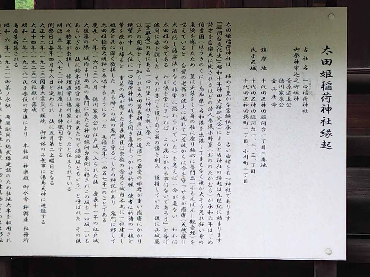 名前の由来を読むと、太田道灌の娘の天然痘の治癒祈願をしたという由来から命名された神社で、あちこち移転されてきたようです。- 旅行時期