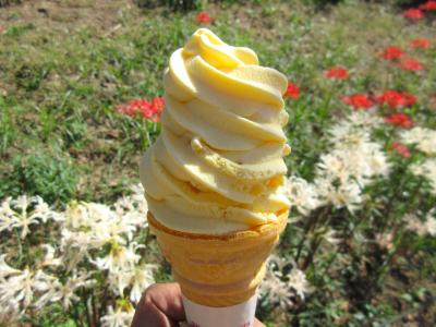 この日も暑かったため、冷たいものが人気で、行列が絶えませんでした。私もマンゴーソフトクリーム(400円)を口にして、暑さをしのぎました。- 旅行時期