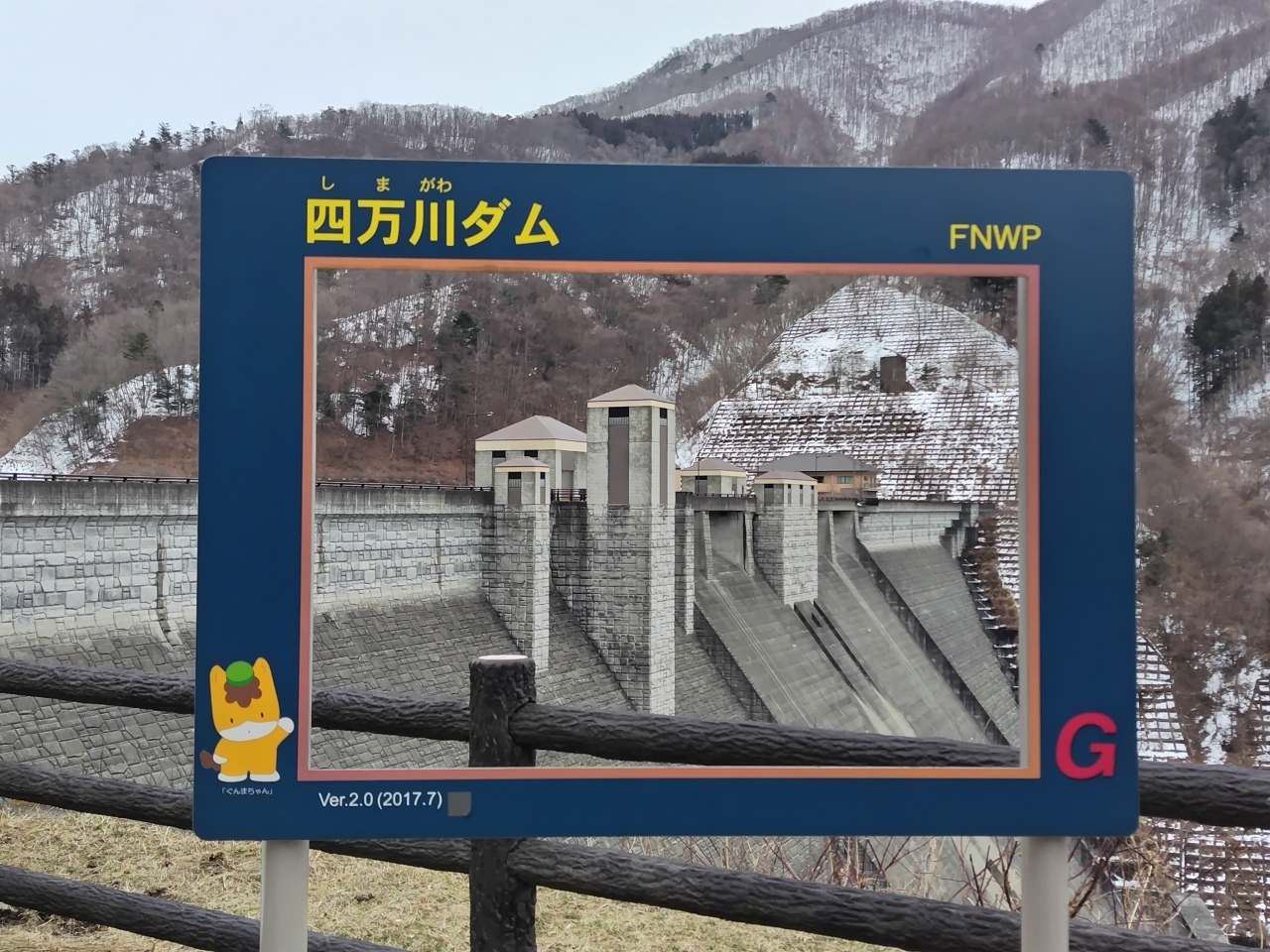 ダムの上から見る光景のほかに、もう一つおすすめの場所は、四万川ダムせせらぎ資料館の前の丘にある奥四万湖展望台です。