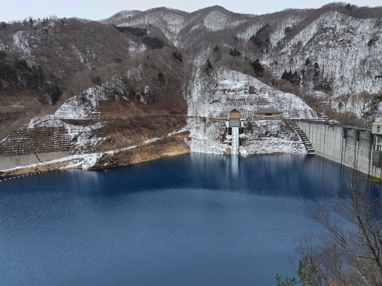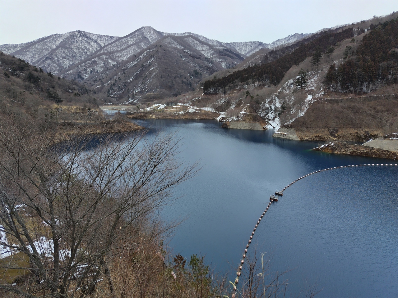 四万川ダムと奥四万湖の全体を見張らせて、素晴らしい眺めです。『四万ブルー』を求めてやってきた甲斐がありました。- 旅行時期
