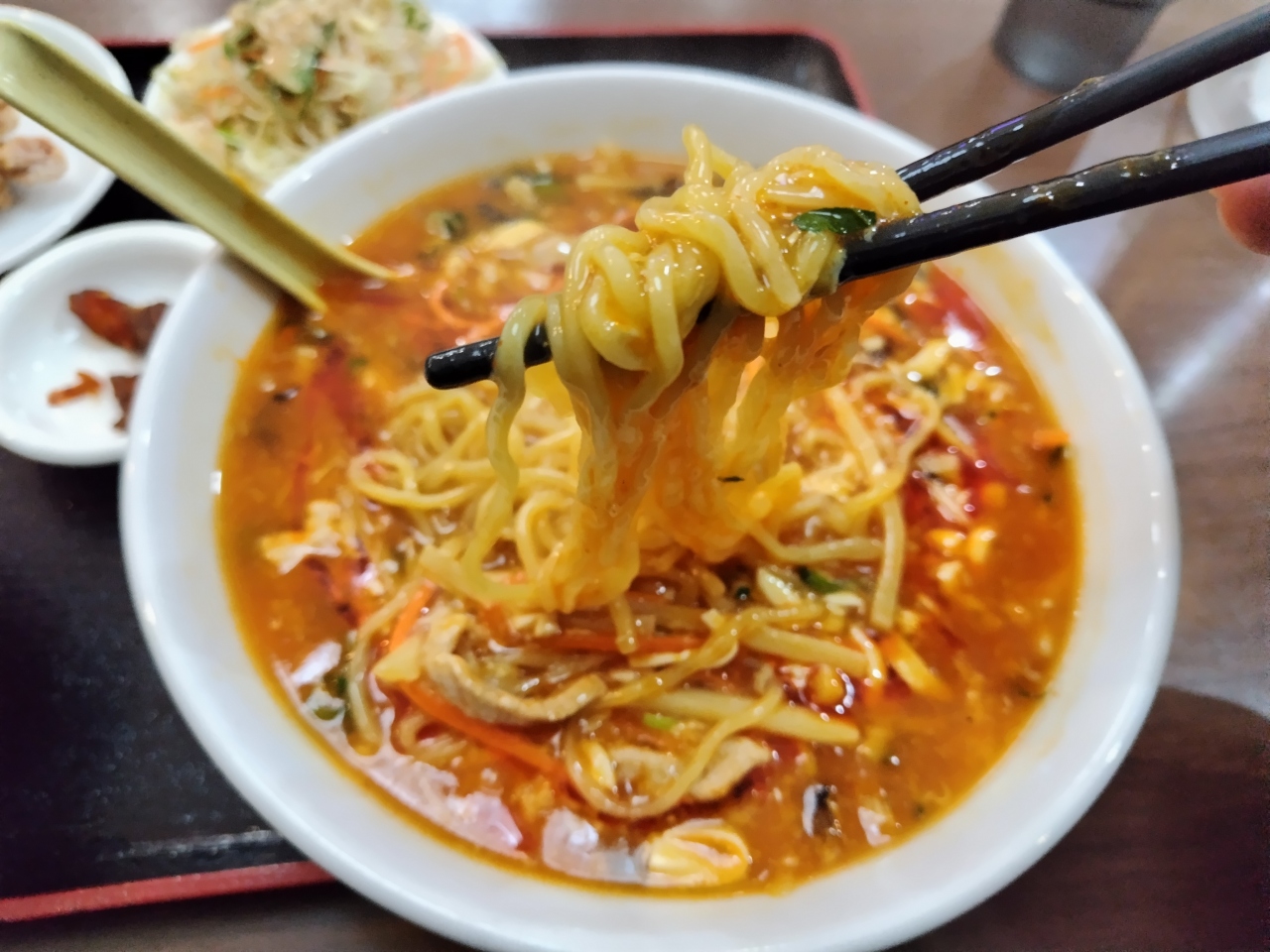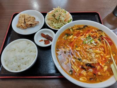 酸辣湯麵は、酸味と辛みがちょうど良いバランスで、とろみがあるスープは、最後まで熱々でいただけて、冷えた身体がよく温まりました。中太縮れ麵は、コシがあって、もちもちして食感が良いです。カリカリの油淋鶏をスープに入れて、美味しくいただきました。- 旅行時期
