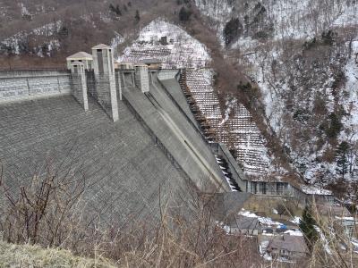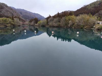四万川ダムと奥四万湖の全体を見張らせて、素晴らしい眺めです。『四万ブルー』を求めてやってきたかいがありました。- 旅行時期
