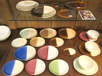 砥部焼の伝統的な焼き物、日常使いのもの、作家による新しい作風のものまでそろっています。色合いや雰囲気も随分幅広いものがそろっています。