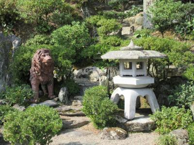 前庭のライオンの像は、大正時代に大洲で復興された新やなせ焼で、表情も精巧にできています。- 旅行時期