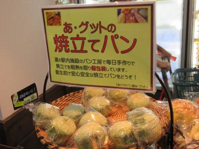 アグリのパン屋 あ・グットは道の駅湯の香しおばらの駐車場わきにある建物で焼いていますが、現在はそこで販売はしていません。焼けたてのパンを道の駅の中の、「あぐりのかふぇ」と「農産物直売所」内で販売しています。
