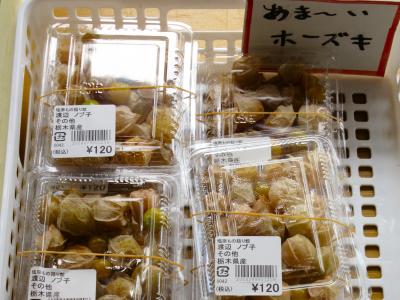 農産物直売所には珍しいものも販売していて、食べられる「ホーズキ」もあって、ビックリ! 今までずっと、中のタネを抜いて鳴らして遊ぶものだと思っていました。