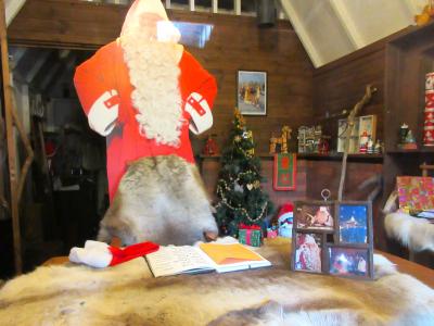 一番大きな建物に、薪ストーブ博物館、北欧雑貨、釣り堀受付の他に、「サンタクロース執務室」があります。