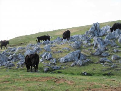 標高が1500m近くて、高い木々が生えていなくて、草原や石灰岩が並んでいる四国カルストにある姫鶴平にあります。ここは草原が広がっていて、展望の良い場所です。