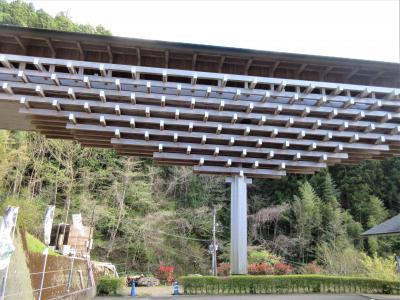 梼原町の中心地からは少し離れたところにある道の駅ゆすはらの駐車場に停めると、雲の上のギャラリーを見上げると、まるで橋のように見えます。