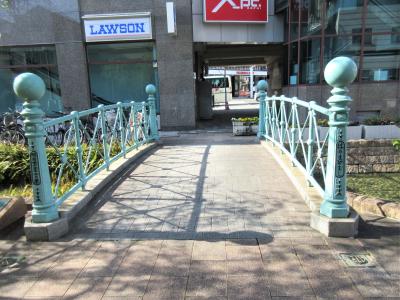 道路の東側の歩道にアンパンマンとジャムおじさんの石像があって、道路の反対側、西側の歩道にバイキンマンの石像があります。
