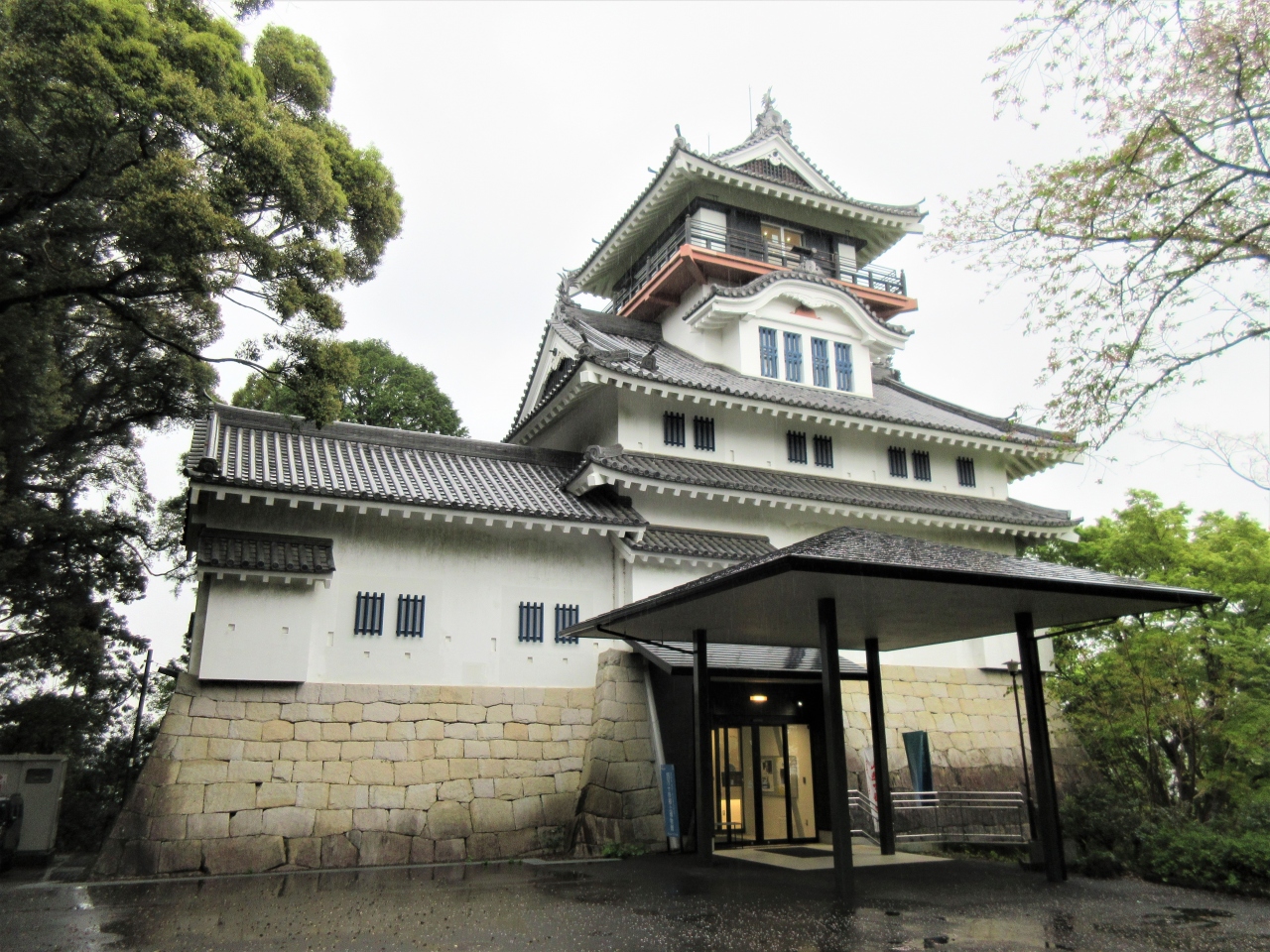 中村平野を一望できる丘陵にある中村城跡の天守閣は、愛知県の犬山城の天守閣をかたどって建てられたそうです。その中が四万十市郷土博物館になっていて、この地域の生活や歴史に関する資料などが展示されています。