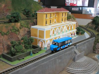 道の駅に入ると、DMVの模型が展示されています。ジオラマもあって、そこでもDMVが走っています。