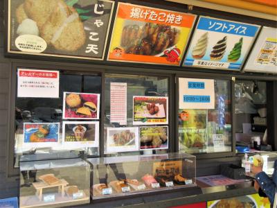 中の売店にもあるし、外の売店でも揚げ立ての「じゃこ天」が売られていて、行列が出来ていました。