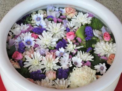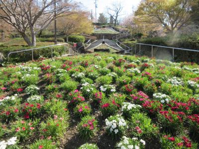 駐車場から山頂への階段に沿った「花のカスケード」が綺麗でした