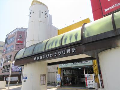 バス停のドーム型屋根が2時間ごとに開いて、中から阿波おどりをする人形が出てくる仕組みのようです。