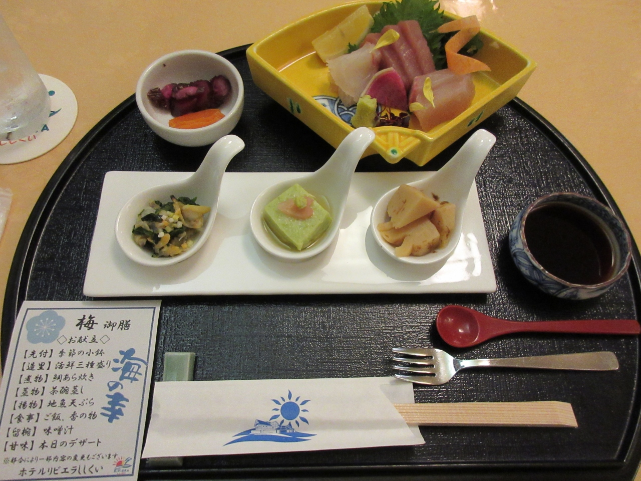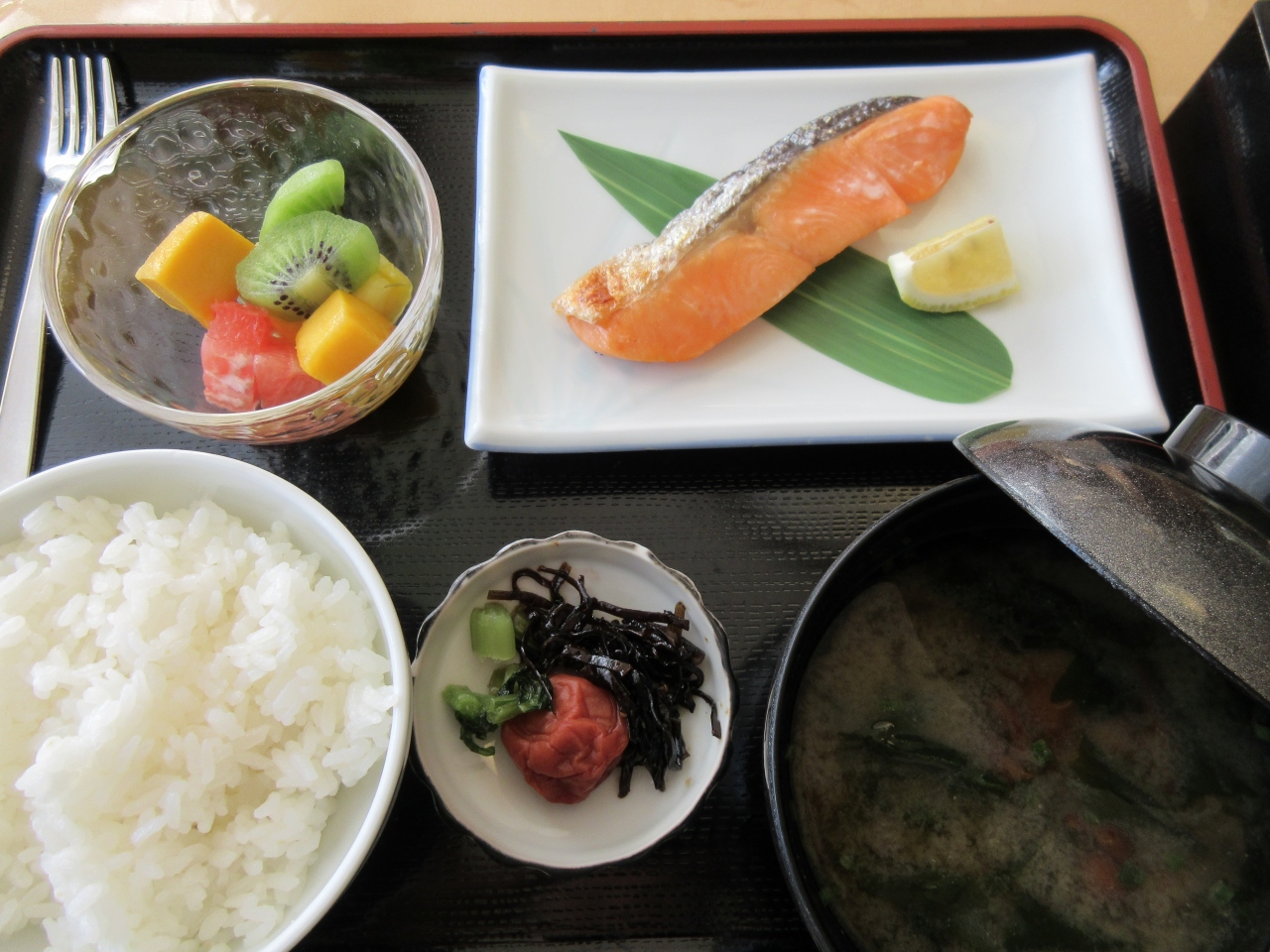 朝食は和定食で、夕食の失望と反対で、満足度が高かったです。珍しく「鯛の刺身」が出て、薄塩の鮭の塩焼きはふっくらして美味しいし、だし巻き卵、マンゴー・キウイ・パイナップル・グレープフルーツなどのフルーツは嬉しかったです。- 旅行時期