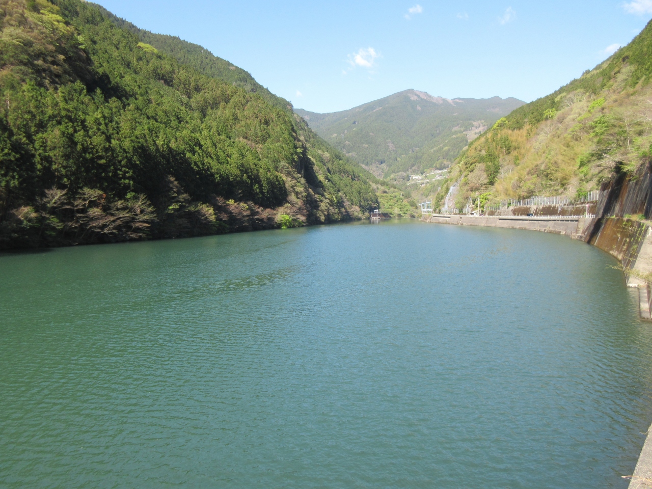 面河第三ダムのあとの「橘中津トンネル」という長いトンネルが愛媛県と高知県の県境になっていて、トンネルを出ると、「面河川」が「仁淀川」と名前が変わっています。