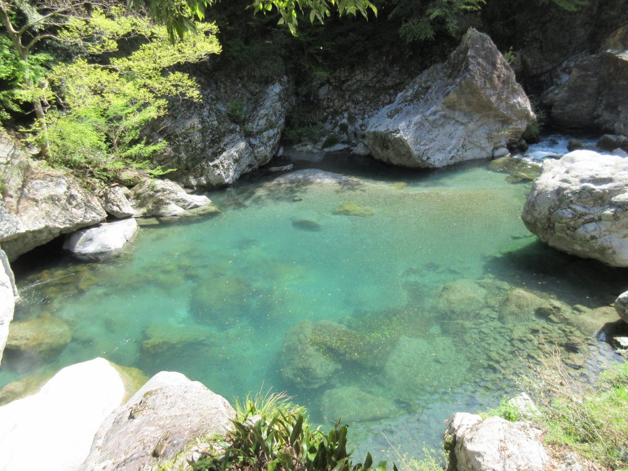 『仁淀ブルー』を見たくて、上流の面河川や、中津渓谷やにこ淵に行きました