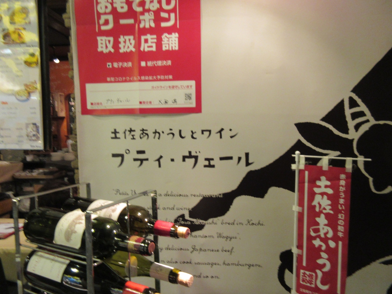 ひろめ市場で「カツオのたたき」ではなく、「土佐あかうし」と「ワイン」をいただきました