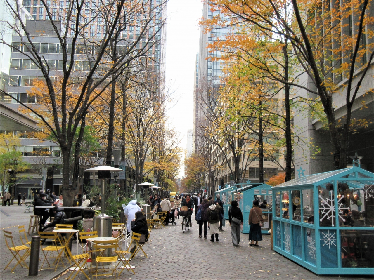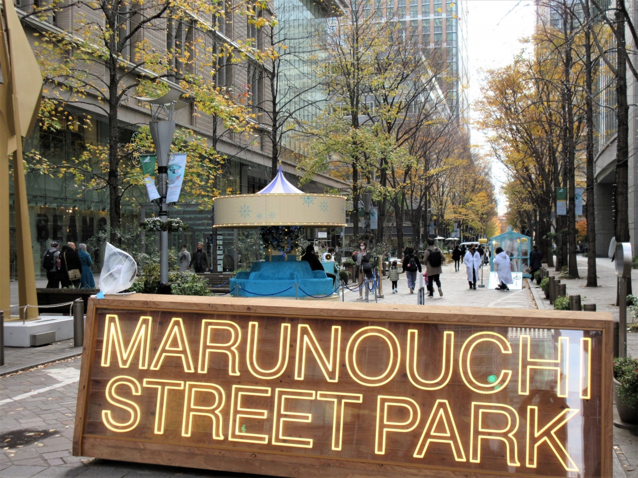 昼間に行幸通りへ行った際、仲通りが車両通行止めになっていて、『MARUNOUCHI STREET PARK』が、12月25日までの期間限定で開催されていました。輪投げ、ベンチのメリーゴーランドなどで遊べて、キッチンカーも出ていました。- 旅行時期