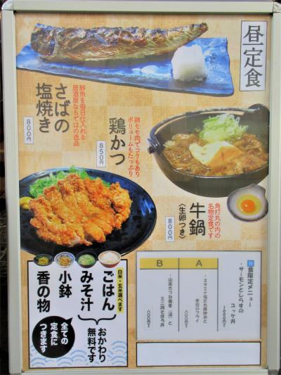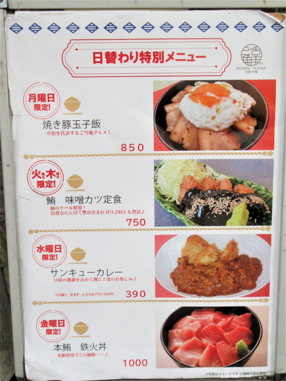 新鮮な魚介類が特徴の居酒屋、活鮮市場の本日の日替わり定食『鮪 味噌カツ定食』(750円)