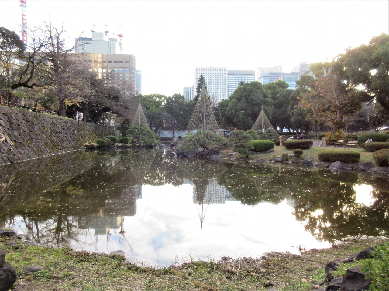 ここはかつて江戸城の日比谷見附(日比谷門)があって、お濠もあったことから、そのお濠を『心字池』という形体で残し、また石垣の一部も残してあります。
