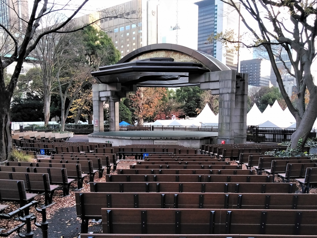 この野外音楽堂は国内初の野外音楽堂で、現在の堂舎は1982年に建築された3代目の建物。客席数は1000席で、利用条件は一般の無料コンサートということが決まっているそうです。
