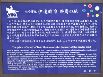 「伊達政宗 終焉の地」と書かれた説明板があって、ビックリ!