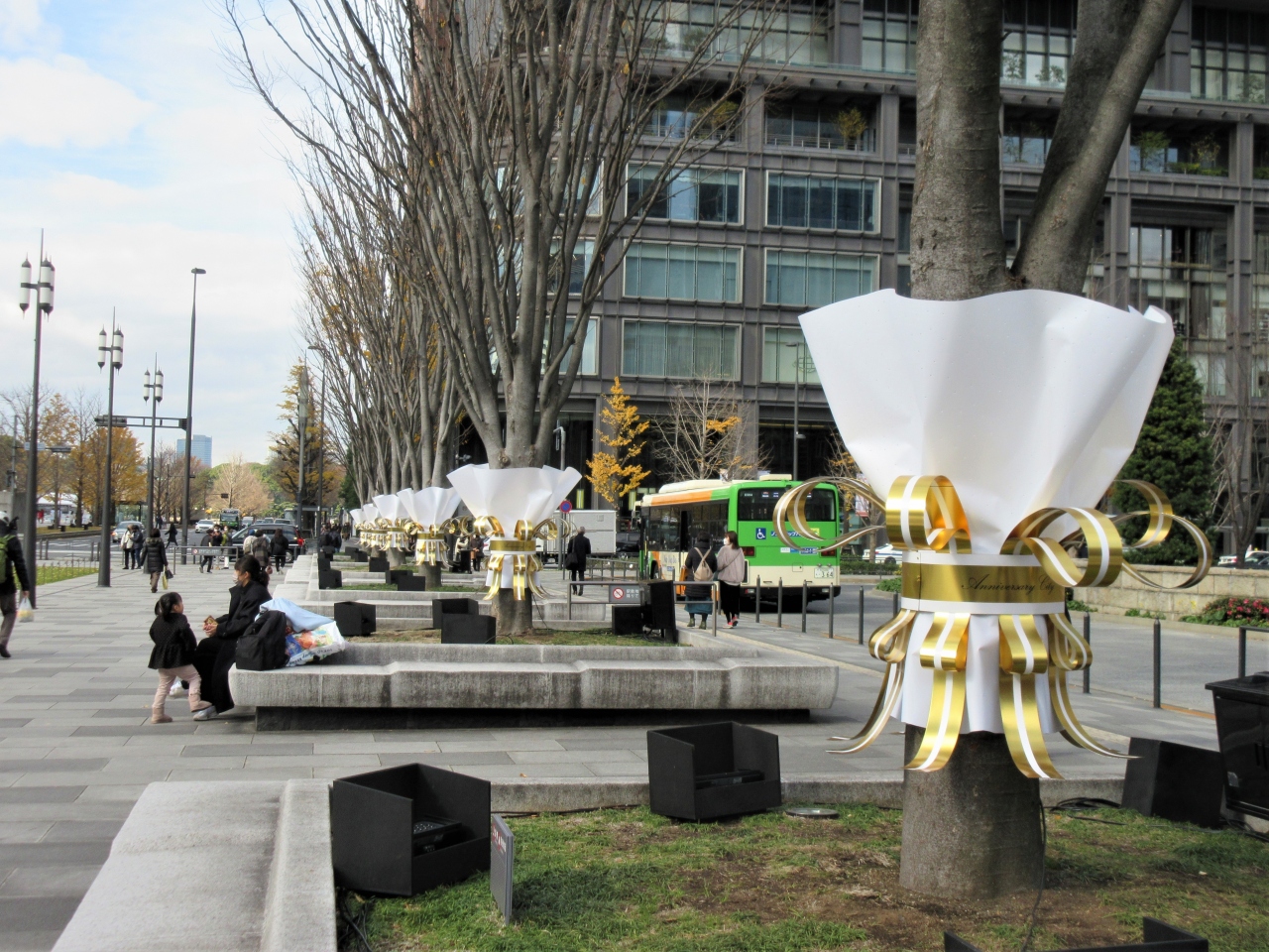 12月21日という時期もあって、『東京ミチテラス2022~Anniversary City~』を開催中でした。広場の樹木を花束に見立てて、日没からイルミネーションが見られました。(12月25日で終了)- 旅行時期