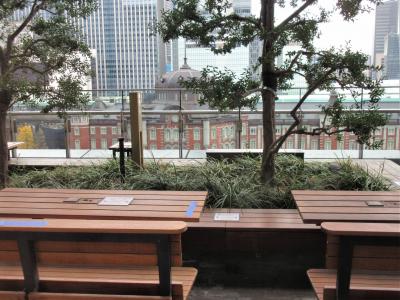 隙間から見ると、素敵なテラス席と東京駅も見えました。工事が終ったら、また改めて行ってみよう!- 旅行時期