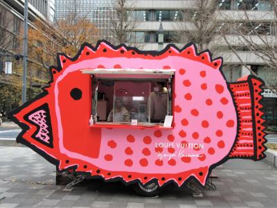 その近くには、『LV フィッシュ・カフェ』という、草間彌生がピンクの魚をモチーフにした移動式カフェがありました。