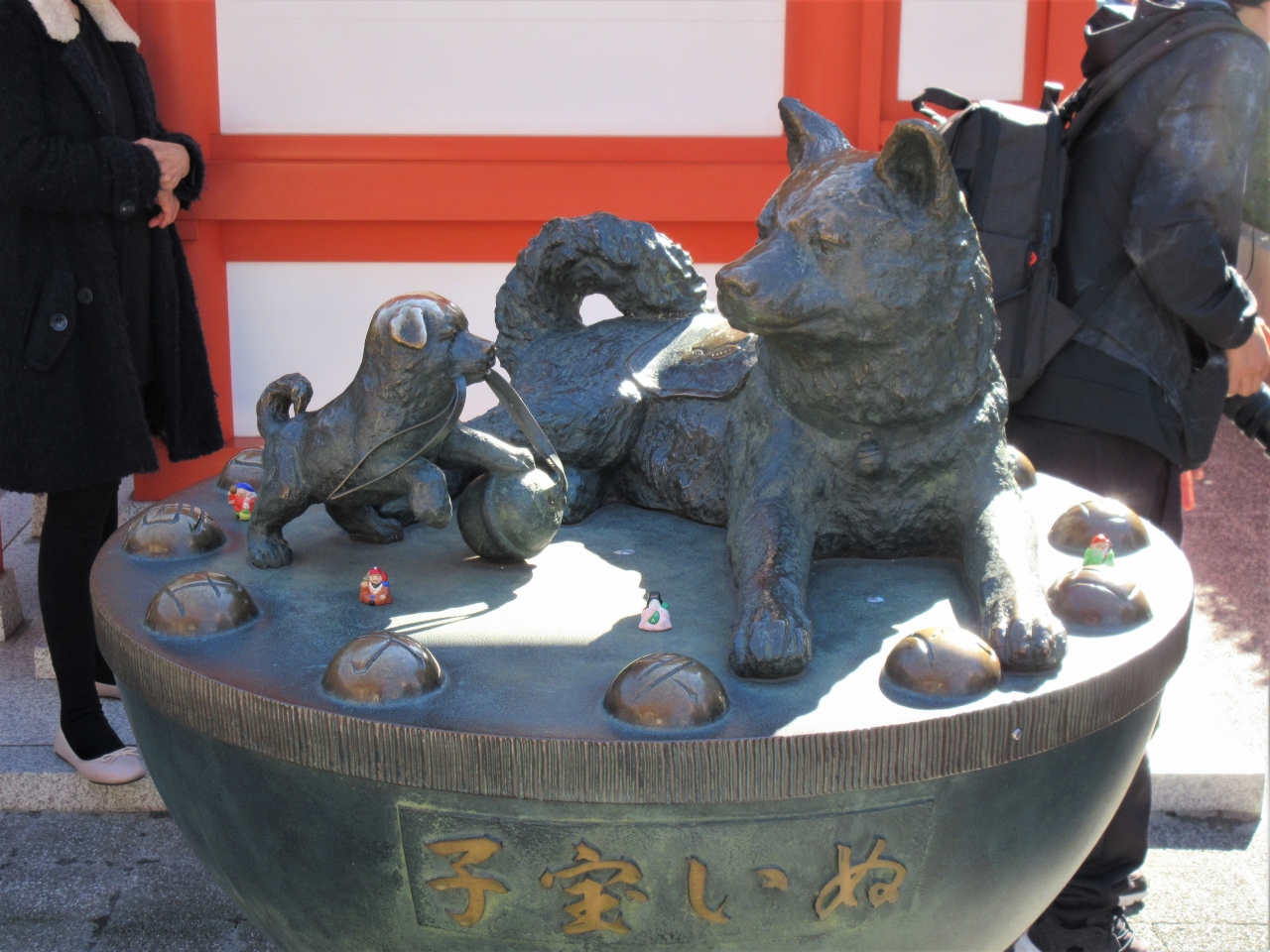 拝殿の他に、「子宝いぬ」の像や、芸能や学業の上達にご利益がある「寳生辨財天」もあります。