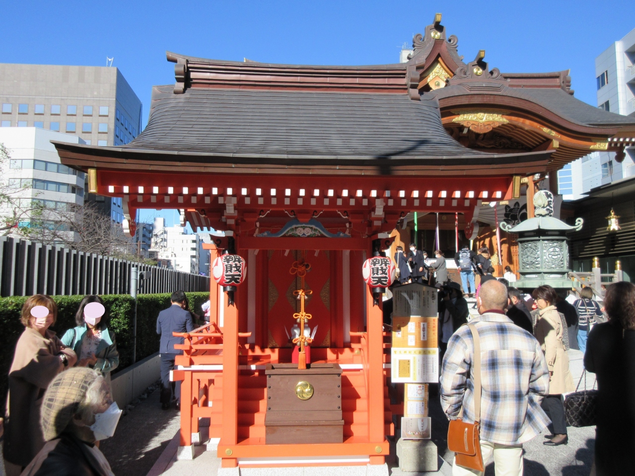 由来は不明で、すぐ近くの同じ町内に「笠間稲荷神社 東京別社」もありますが、それとの関係を調べても不明でした。