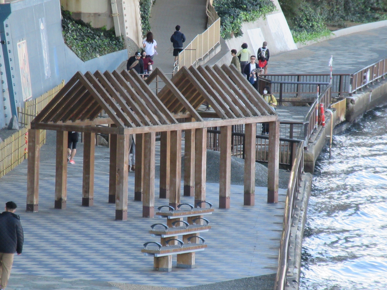 隅田川沿いの遊歩道もところどころに、「隅田川テラス」という名で休憩できる場所が出来ています。