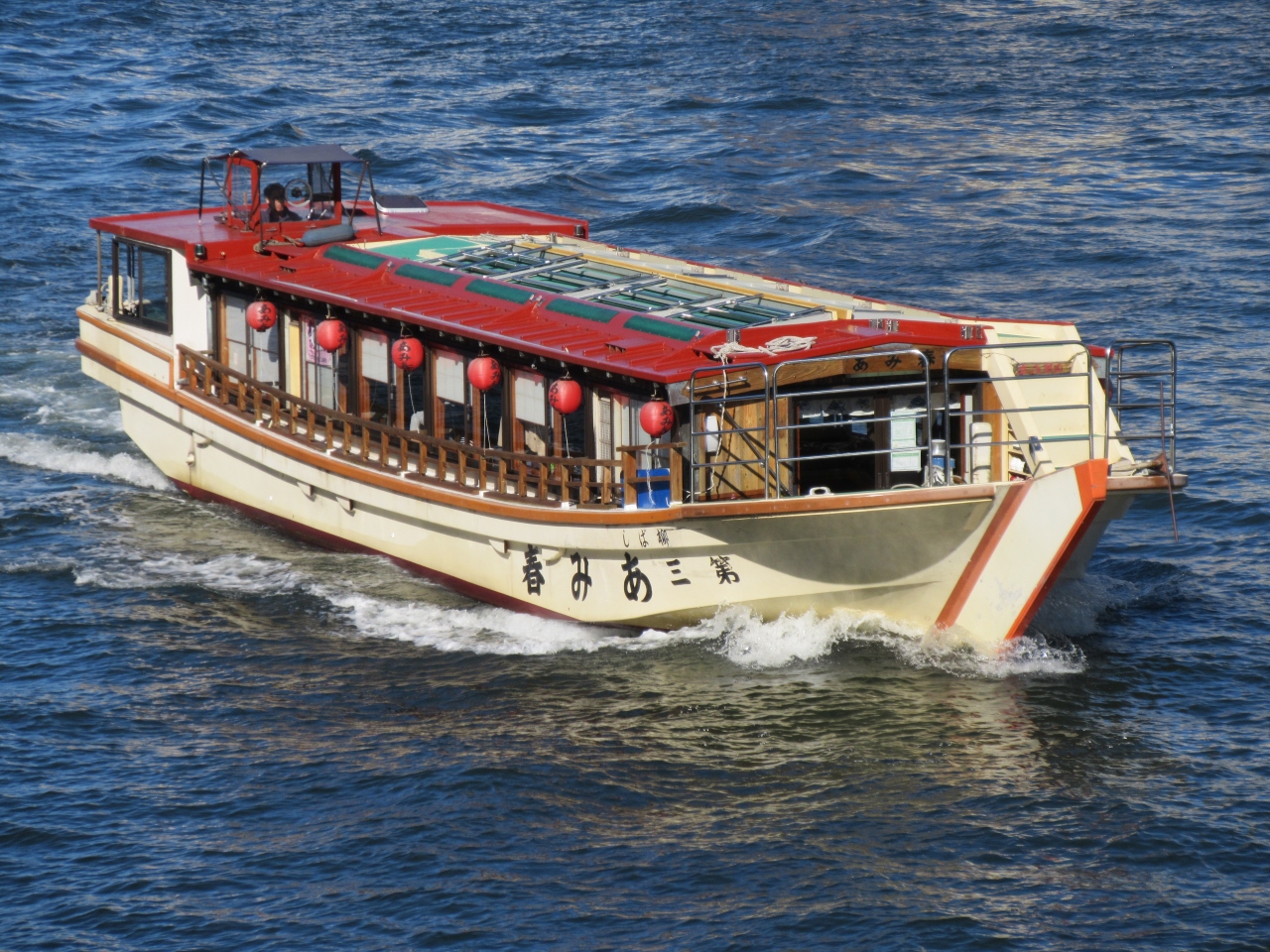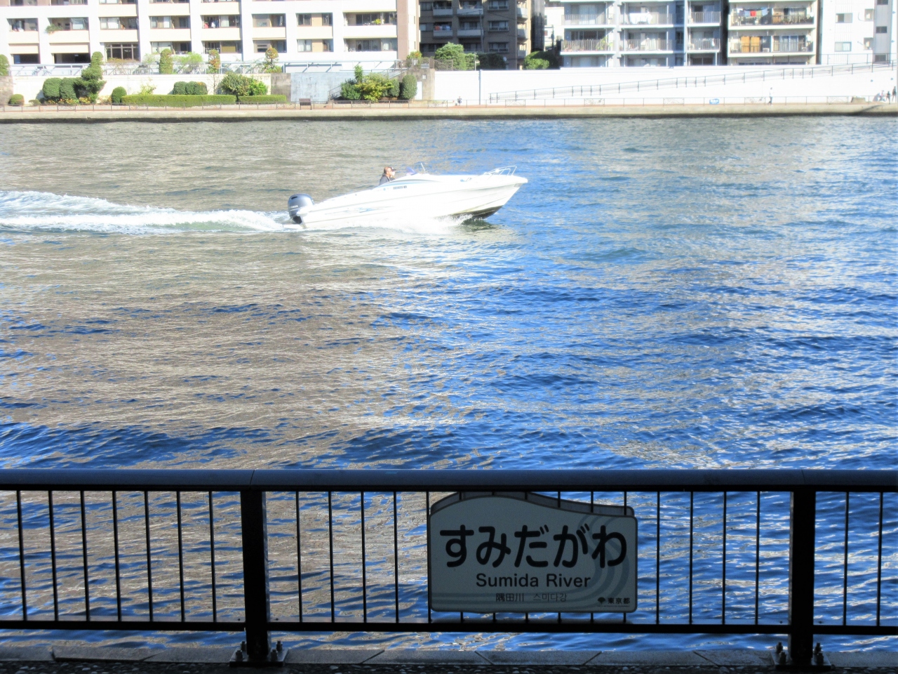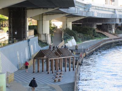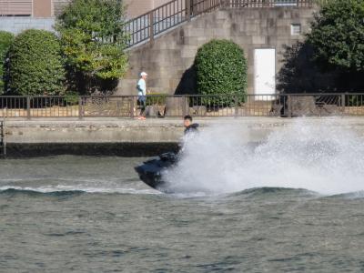 ウォーキングやジョギングをする人も多く、またベンチに腰掛けて、通っていく屋形船やモーターボート、ジェットスキーを眺めていて、時間が経つのを忘れます。