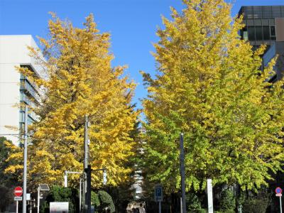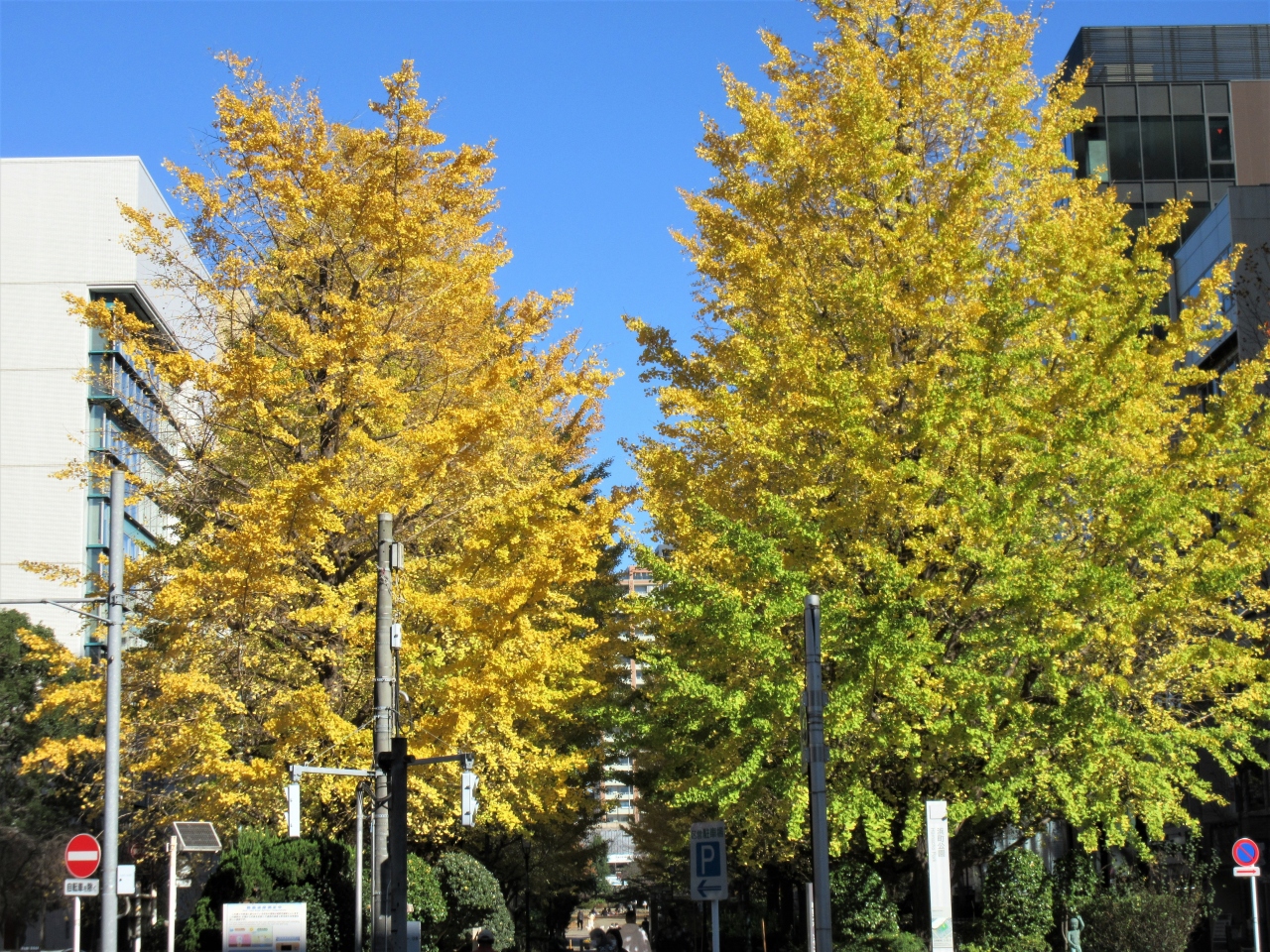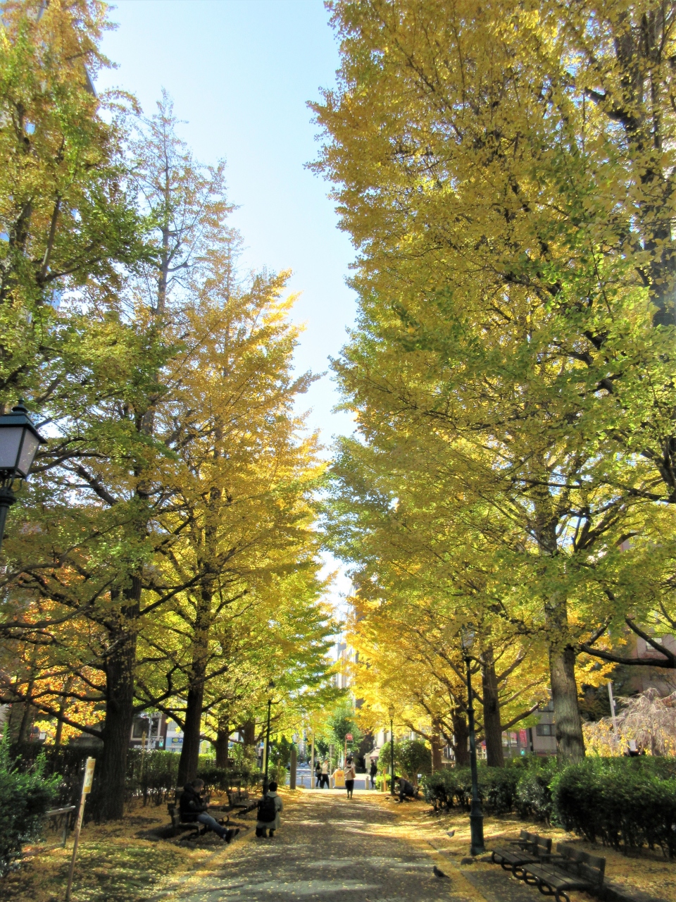 明治座横の浜町公園のイチョウ並木が黄葉になって美しかったです