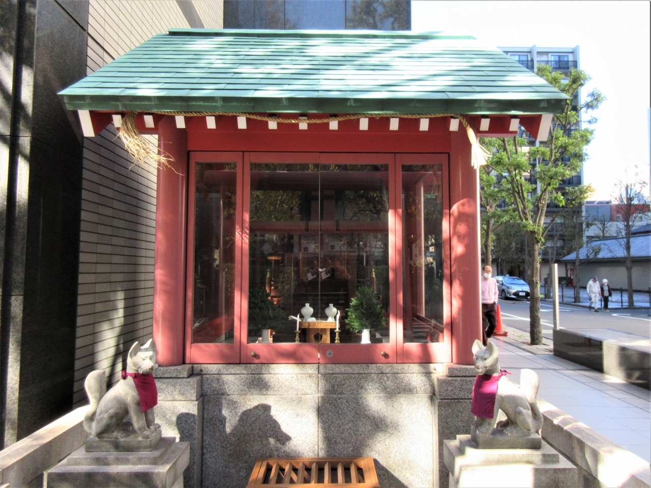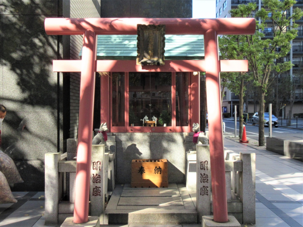 明治座の建物の角にあるために、通称「明治座稲荷神社」。